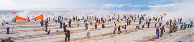 1990年3月,阿克蘇各族干部群眾在柯柯牙參加義務(wù)植樹大會(huì)戰(zhàn)。馬戰(zhàn)峰攝