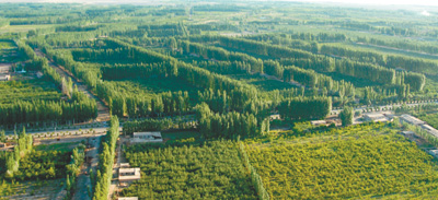 1986年,地委下定決心,在風(fēng)沙策源地柯柯牙啟動(dòng)綠化工程。30多年來,克服重重困難,先后組織近210萬人次,進(jìn)行37次綠化造林大會(huì)戰(zhàn),筑起了一條集生態(tài)林、經(jīng)濟(jì)林于一體的防風(fēng)治沙“綠色長城”。亙古荒原、風(fēng)沙之源,變成了生態(tài)屏障、綠洲果園。