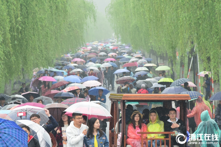 杭州:清明時節(jié)雨紛紛 西湖游客雨中游