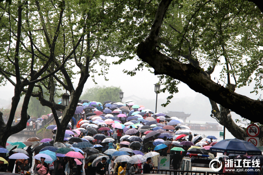 杭州:清明時節(jié)雨紛紛 西湖游客雨中游
