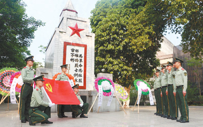 清明之際,廣西南寧,武警官兵在烈士紀(jì)念碑前重溫入黨誓詞。李世近 攝(人民視覺)