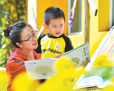 4月6日,青年志愿者指導(dǎo)小朋友讀書。清明期間,河北石家莊市橋西區(qū)開展“共享圖書 快樂閱讀”活動,鼓勵孩子養(yǎng)成閱讀習(xí)慣。記者 史自強(qiáng) 攝