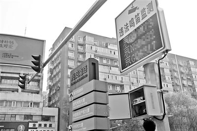 昨天下午,北青報(bào)記者來(lái)到黃莊路口西北角,周圍鳴笛聲不斷,嘈雜一片。很快,西北角路口處懸掛的LED顯示屏上,就出現(xiàn)了違法鳴笛車輛的車牌號(hào)信息。