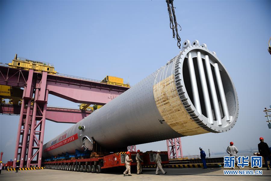 4月28日,江蘇鎮(zhèn)江,工人在給260萬噸/年沸騰床渣油鍛焊加氫反應(yīng)器做發(fā)運前的準備工作。新華社記者李響 攝