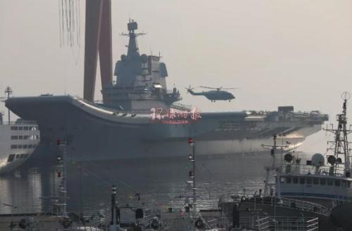 在剛過去的周末,國(guó)產(chǎn)航母再度成為國(guó)內(nèi)網(wǎng)絡(luò)以及周邊地區(qū)的熱點(diǎn)話題。5日早晨,一架直-18改進(jìn)型直升機(jī)降落在停泊于大連造船廠碼頭的國(guó)產(chǎn)航母甲板上,數(shù)分鐘后起飛離開。這是國(guó)產(chǎn)航母首次進(jìn)行直升機(jī)起降測(cè)試,此前一天,遼寧海事局在官網(wǎng)上貼出禁航公告,宣布由于軍事任務(wù)的緣故,渤海海峽黃海北部自當(dāng)日下午4點(diǎn)開始,禁航一周。多方猜測(cè),國(guó)產(chǎn)航母海試在即。