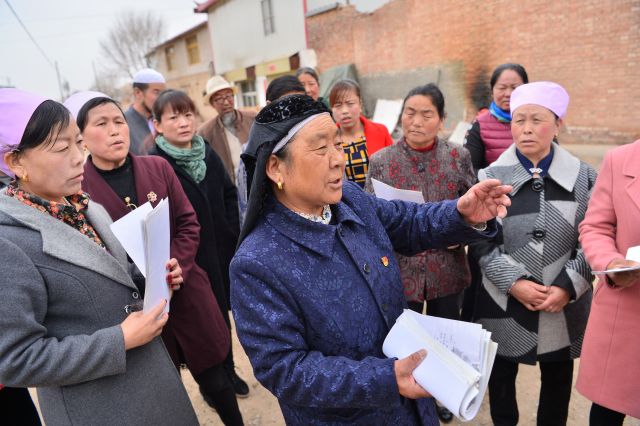4月10日,馬蘭芳(前右)帶著部分黨員走到村頭,給沒能參加當(dāng)日“小院課堂”的黨員群眾講政策。 新華社記者 聶建江 攝