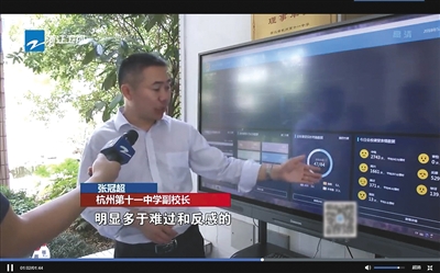 5月15日,杭州第十一中學副校長張冠超介紹“智慧課堂行為管理系統(tǒng)”。浙江衛(wèi)視截圖