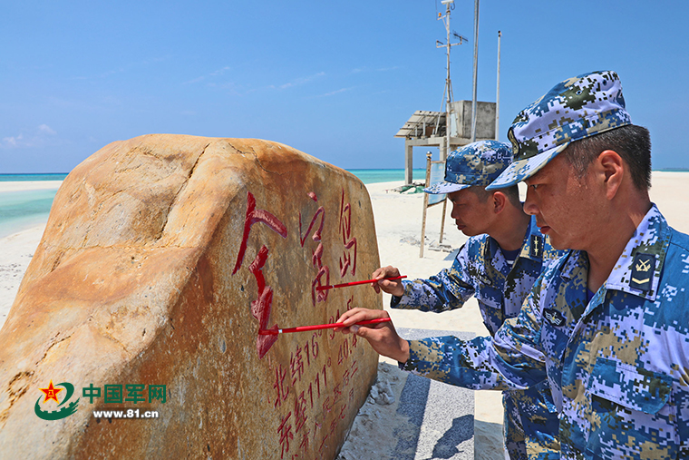 在全富島,關建軍和三沙市副市長陳儒茂帶頭描摹主權碑上“中國”兩個大字。“每描一筆,都感到神圣無比,建設強大穩(wěn)固的現(xiàn)代邊??辗?,共同守護好我們的祖宗海,離不開軍地協(xié)力??钙疬@一如山使命,我們責無旁貸!”關建軍的話語擲地有聲。特約記者 薛成清 通訊員 盆世舟 潘新新
