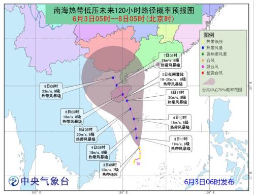 據(jù)中央氣象臺(tái)消息,預(yù)計(jì)3日夜間至5日,西南地區(qū)東部、江南、華南等地自西向東將有一次較強(qiáng)降水天氣過(guò)程;南海及華南等地將有較大風(fēng)雨天氣,中央氣象臺(tái)3日06時(shí)繼續(xù)發(fā)布熱帶低壓預(yù)報(bào)。