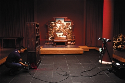 昨日,故宮南薰殿,工作人員在對展陳的明清家具進行三維掃描。南大庫和南薰殿總共將展出約2000件明清家具。新京報記者 浦峰 攝