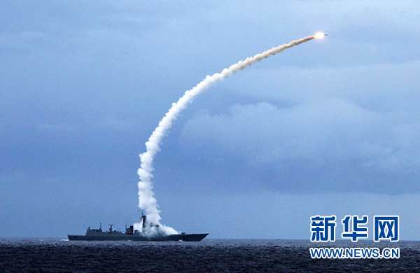 ??谂炘趯崗椦萘曋邪l(fā)射艦空導(dǎo)彈攔截來襲目標(2010年7月26日攝)。 新華社發(fā)