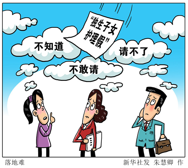 一些符合條件的獨(dú)生子女則表示“不敢請”。在福州市某民營企業(yè)工作的謝女士看來,這個假期是“機(jī)關(guān)事業(yè)單位獨(dú)生子女帶薪護(hù)理假”;鄭州市一家民營企業(yè)員工劉娟娟說,現(xiàn)在年假還有一些公休假都沒有保證,更不敢奢求獨(dú)生子女護(hù)理假,這類假期如果只是原則性的要求,估計也就是一場空,“老板不樂意,能休你也不敢休”。