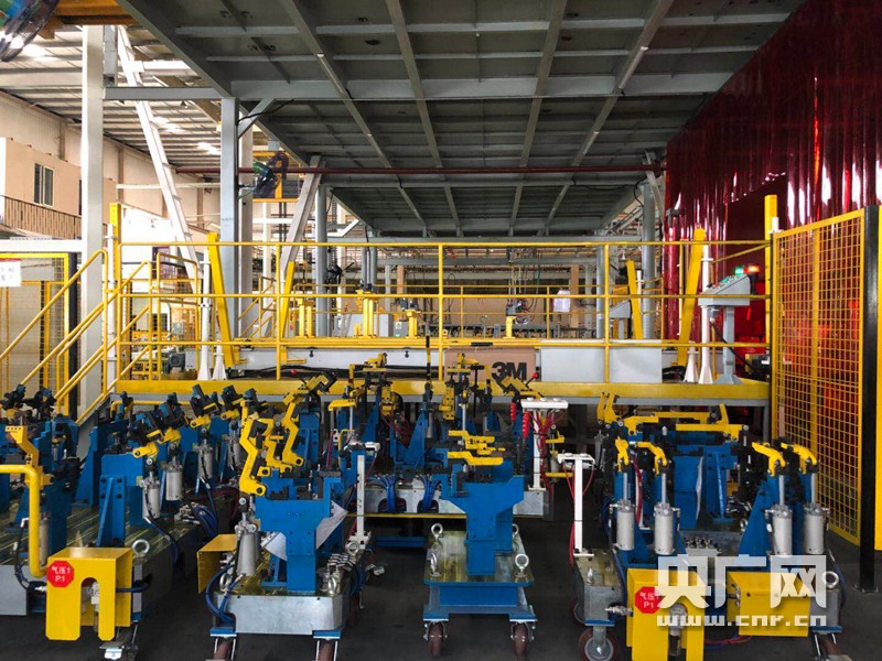 圖為焊裝廠E300,切換夾具區(qū)。(記者 高寒露 攝)