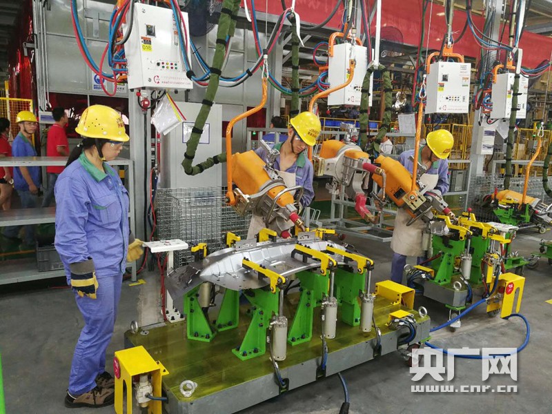 記者來到總裝車間內(nèi),焊裝機器正不間斷的工作著。