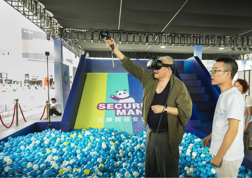 VR與滑梯、海洋球池結(jié)合,形成“連環(huán)暈眩術(shù)”,市民體驗(yàn)滑梯后,再戴上VR眼鏡,在“暈?!焙蠡卮鹁W(wǎng)絡(luò)安全知識問題;