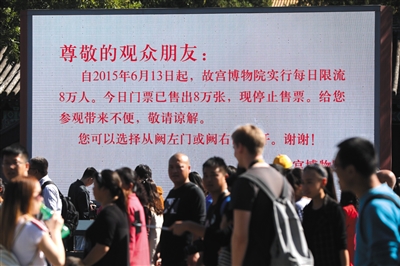 昨天是國慶假期第二天,也是故宮傳統(tǒng)的全年游覽高峰日。自2015年實行每日限流8萬人次以后,故宮游覽高峰不再體現(xiàn)在游客數(shù)量,而是體現(xiàn)在“搶票”的激烈程度上。早在9月30日上午,10月2日的故宮門票就在網(wǎng)上銷售一空。