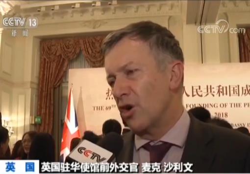 英國(guó)駐華使館前外交官 麥克·沙利文(中文):這個(gè)(中國(guó)的變化)用半天也說(shuō)不完,我第一次到中國(guó)是1982年,改革開(kāi)放剛開(kāi)始,那時(shí)候我們根本沒(méi)有想到現(xiàn)在中國(guó)會(huì)成為那么成功的國(guó)家,那么繁榮的國(guó)家,影響那么大的國(guó)家,(上世紀(jì))八十年代中國(guó)人、外國(guó)人,我們都沒(méi)有想像會(huì)成為這樣,向你們69年來(lái)取得的偉大成就表示祝賀。