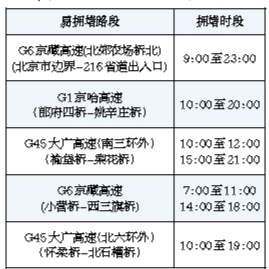 ??????? 京藏、京哈、大廣、京港澳等多條高速部分路段或全天擁堵