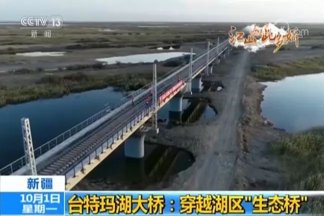 格庫鐵路臺(tái)特瑪湖特大橋工程位于世界第二大沙漠——塔克拉瑪干沙漠的腹地,設(shè)計(jì)長度24.5公里,是新疆庫爾勒到青海格爾木段鐵路的重要組成部分。大橋由中鐵一局于2014年開工建設(shè),目前已完成鐵路橋軌道鋪設(shè)。