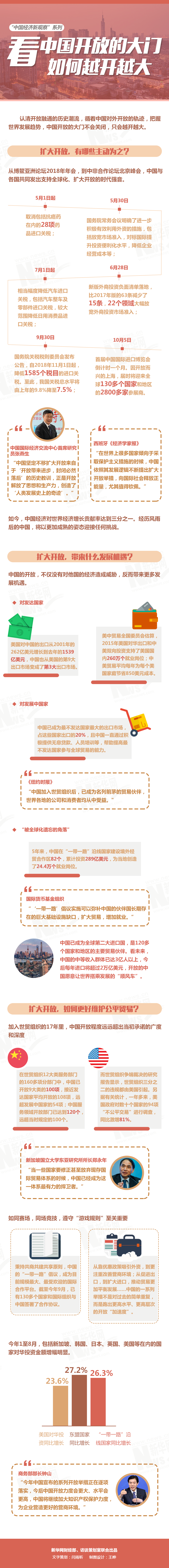面對國際上貿易保護主義抬頭之勢,包括舉辦進口博覽會等中國一系列擴大開放舉措受到國內外高度贊賞,但也引發(fā)一些人的猜測:中國擴大開放到底是主動為之,還是應對貿易摩擦的被迫之舉?