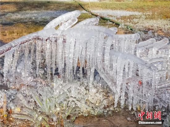 10月10日,甘肅肅南縣經(jīng)歷一場(chǎng)降雨降溫天氣,出現(xiàn)大面積冰掛景觀。樹(shù)木花草被“冰封”,在陽(yáng)光下宛如玉樹(shù)瓊花,將肅南縣妝點(diǎn)得如詩(shī)如畫。索國(guó)民 攝