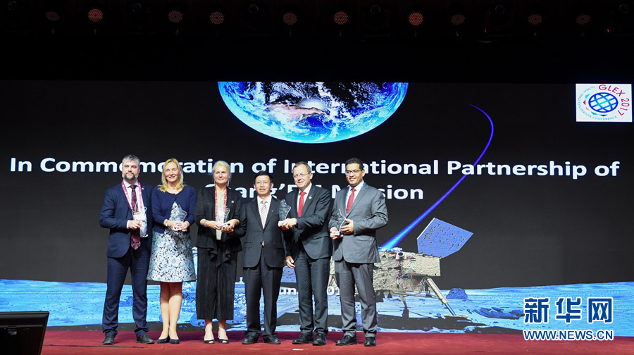 中國(guó)國(guó)家航天局嫦娥四號(hào)國(guó)際合作伙伴關(guān)系建立啟動(dòng)儀式在2017年全球航天探索大會(huì)上舉行。新華社記者陳曄華攝
