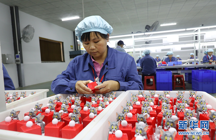 英德市連江口鎮(zhèn)連樟村扶貧工廠的工人在檢查玩具產(chǎn)品的質(zhì)量。2017年村里通過產(chǎn)業(yè)扶貧引入企業(yè)落戶到村,讓村民實(shí)現(xiàn)了家門口就業(yè)(10月24日攝)。新華社記者王瑞平攝