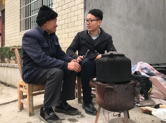圖為2017年農(nóng)歷臘月27,梁建強(右)在湖北崇陽走訪貧困戶。