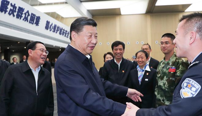 6日下午,習(xí)近平來(lái)到浦東新區(qū)城市運(yùn)行綜合管理中心,通過(guò)大屏幕了解上海城市精細(xì)化管理和國(guó)際貿(mào)易單一窗口運(yùn)營(yíng)情況。