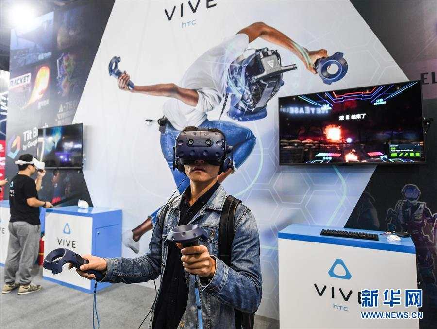 11月6日,參觀者在博覽會現場體驗虛擬現實技術。