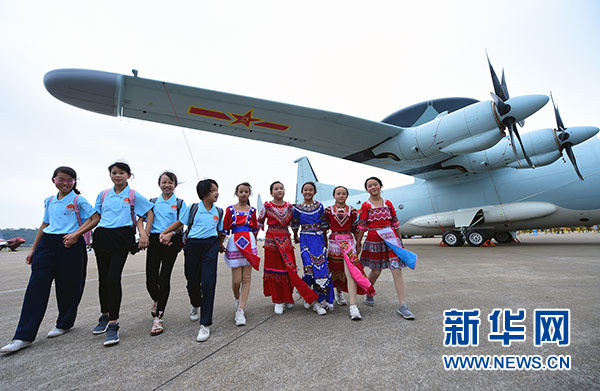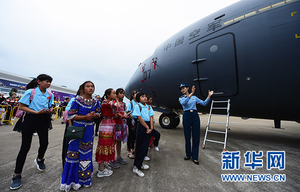 藍天春蕾女童在航展現(xiàn)場參觀(11月10日攝)。 新華社發(fā)(陳藝 攝)