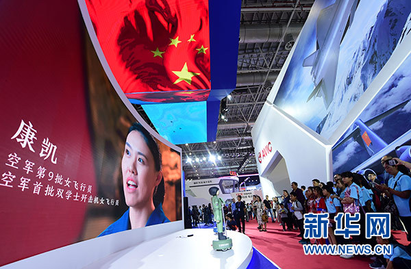 藍天春蕾女童在航展現(xiàn)場參觀(11月10日攝)。新華社發(fā)(陳藝 攝)