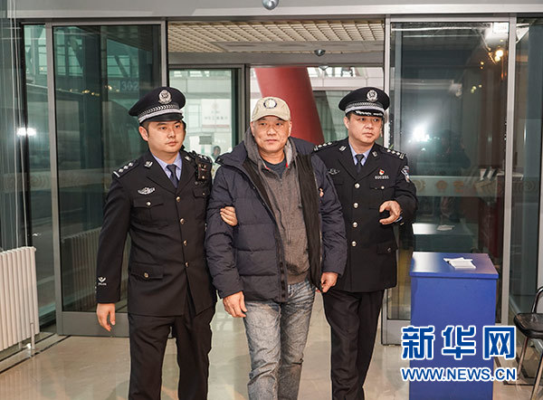 11月14日,在北京首都機場,紅通逃犯鄭泉官被從美國強制遣返。 新華社記者 殷剛 攝