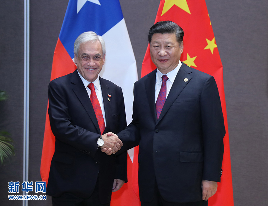 習(xí)近平指出,智利是第一個同新中國建交的南美洲國家,中智關(guān)系長期走在中拉關(guān)系前列。新形勢下,我們要繼續(xù)推動中智合作再上新臺階。我祝賀你第二次擔(dān)任智利總統(tǒng),相信在我們共同引領(lǐng)下,中智全面戰(zhàn)略伙伴關(guān)系一定會開創(chuàng)新局面,實現(xiàn)新發(fā)展,為提升中拉整體合作作出更大貢獻。