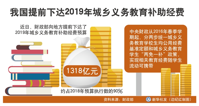 我國提前下達(dá)2019年城鄉(xiāng)義務(wù)教育補助經(jīng)費 新華社發(fā) 邊紀(jì)紅 制圖