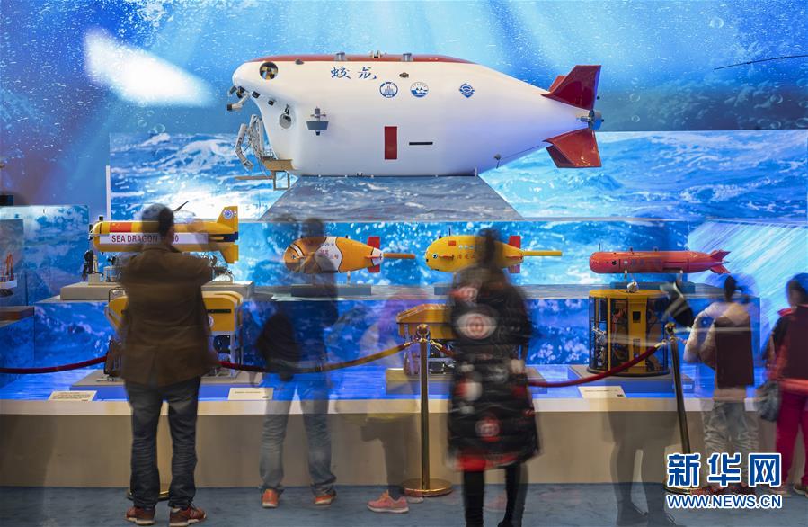 11月18日,觀眾在觀看“蛟龍”號(hào)載人潛水器等模型(慢門拍攝)?!皞ゴ蟮淖兏铩獞c祝改革開放40周年大型展覽”11月13日在國(guó)家博物館隆重開幕。自開幕以來(lái),展覽吸引了眾多參觀者。新華社記者 才揚(yáng) 攝