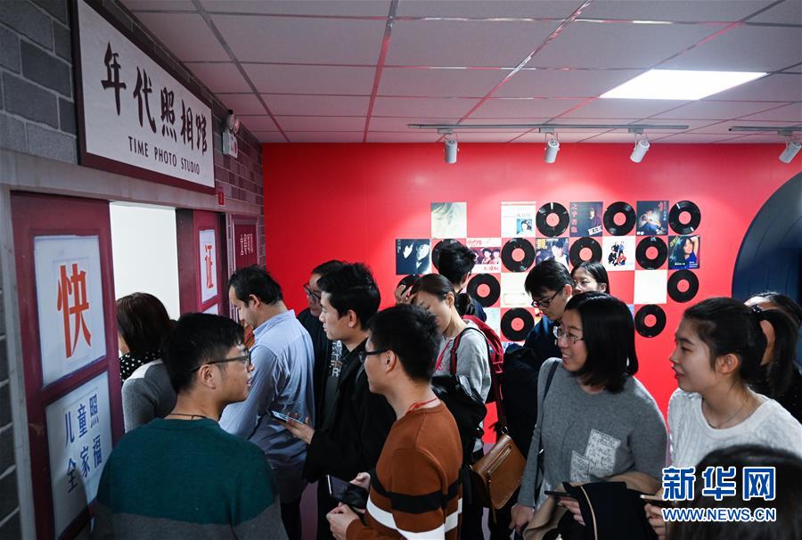 11月17日,觀眾在展覽上的“時(shí)光博物館”內(nèi)排隊(duì)體驗(yàn)?zāi)甏障囵^。 新華社記者 陳曄華 攝