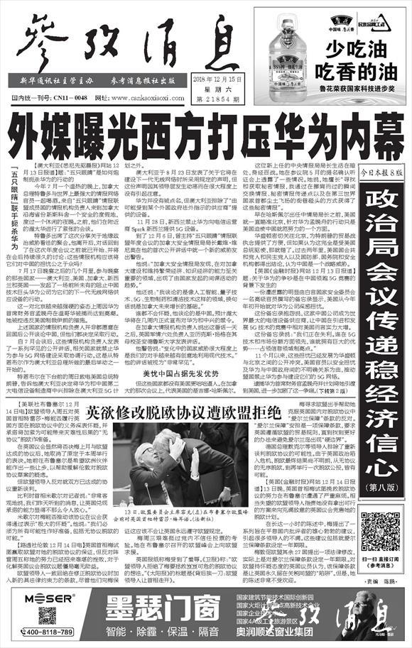《參考消息》頭版披露西方打壓華為內(nèi)幕