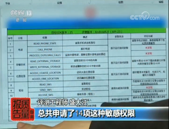 上海市消費者權(quán)益保護委員會、副秘書長 唐健盛:從測試情況來看,可以說情況非常不理想,很多的頭部App實際上在權(quán)限的申請和調(diào)用方面,其實是違反了一些必要性、正當性等等原則的。