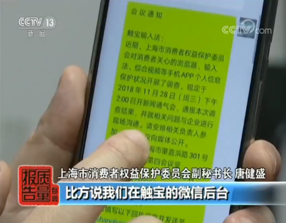上海市消費者權(quán)益保護委員會副秘書長 唐健盛:發(fā)布會的兩天以前,我們就通過各種方法和三家企業(yè)能夠進一步,希望能夠跟他們聯(lián)系上,比方說我們在觸寶的微信后臺進行了留言,并且我們也上傳了PDF版的合照我們的會議通知,那么其它的你比方說獵豹瀏覽器和芒果TV我們也采用了類似的方法,我們希望多種渠道能夠使他們知道這個事,并且也非常希望他們能夠來開我們的發(fā)布會,給到消費者一個明明白白的說法。那么非常遺憾,我們通過消費者溝通的這種渠道沒有獲得企業(yè)應有的響應,我們也認為其實在這一塊企業(yè)也是需要進一步加強的。