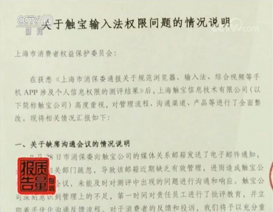 上海市消費者權(quán)益保護委員會副秘書長 唐健盛:我們都用了消費者跟企業(yè)溝通的一些渠道,也就是說它在App或者它的官網(wǎng)上面明示的一些郵箱傳真等等。但是我們非常遺憾地看到,這些通知很多企業(yè)都沒有得到足夠的重視,或者說我們這次也了解到,有些企業(yè)它根本和消費者溝通的郵箱可能是幾個月甚至于大半年都沒有去看過的。在隨后的媒體會上,上海市消保委正式通報了對18款手機應用軟件App的評測結(jié)果,最終公布了“獵豹瀏覽器,觸寶輸入法和芒果TV視頻”這三款App申請權(quán)限存在找不到對應功能等問題。據(jù)介紹, 直到這場媒體會之前,獵豹、觸寶和芒果TV這三家相關(guān)企業(yè)對于上海市消保委的多方聯(lián)系,始終沒有回應,也沒有出席相關(guān)的技術(shù)溝通會。