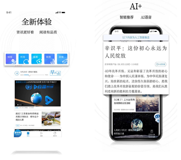 “AI+”賦能內(nèi)容生產(chǎn),精準觸達用戶。升級后的客戶端新技術應用更加強大,大量使用人工智能、大數(shù)據(jù)等前沿技術,整合行業(yè)頂級的AI智能技術來服務于內(nèi)容生產(chǎn)創(chuàng)作和用戶體驗優(yōu)化。新版頁面采用大量全新的設計理念和技術應用,新穎酷炫的呈現(xiàn)令人耳目一新;首創(chuàng)融合正能量算法的智能推薦技術,實現(xiàn)品質內(nèi)容的精準推送;采用基于深度神經(jīng)網(wǎng)絡的新一代AI智能語音合成引擎,可實現(xiàn)任意文字快速轉換為仿真人語音,合成效果達到國內(nèi)領先水平。