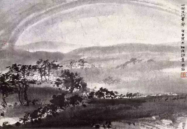 赤橙黃綠青藍紫,誰持彩練當空舞?雨后復斜陽,關(guān)山陣陣蒼。