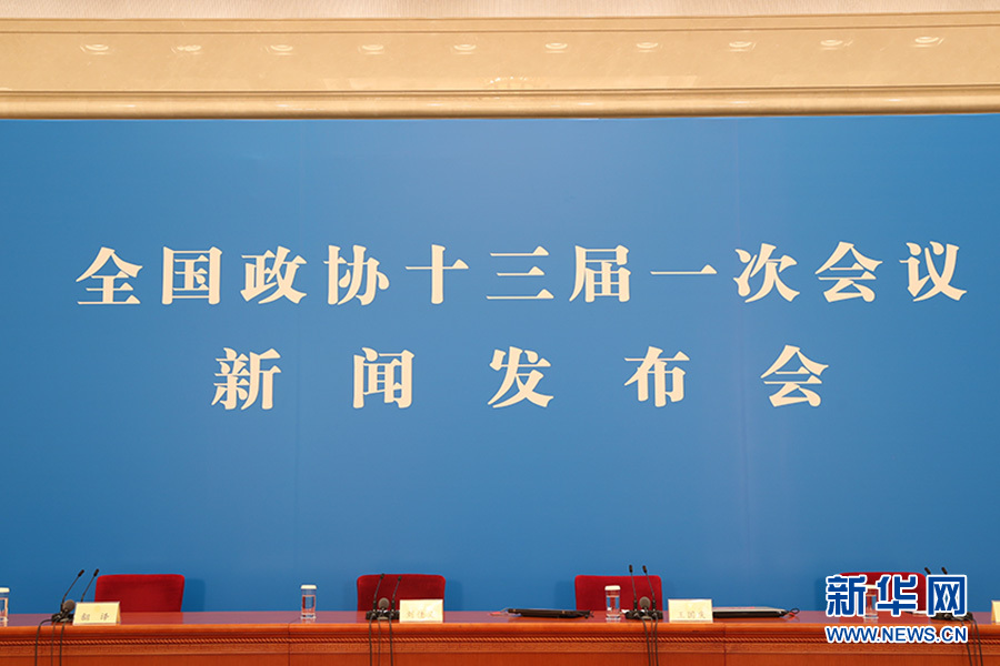 全國政協(xié)十三屆一次會(huì)議新聞發(fā)布會(huì)3月2日16:30在人民大會(huì)堂一層新聞發(fā)布廳召開,大會(huì)新聞發(fā)言人王國慶向中外媒體介紹本次大會(huì)有關(guān)情況并回答記者提問。圖為新聞發(fā)布會(huì)開始前。新華網(wǎng)/中國政府網(wǎng) 陳杰攝