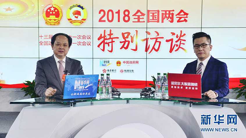 3月5日,全國政協(xié)委員、金澳投資集團董事局主席舒心(左)做客新華網(wǎng)2018全國兩會特別訪談。新華網(wǎng) 李相博攝