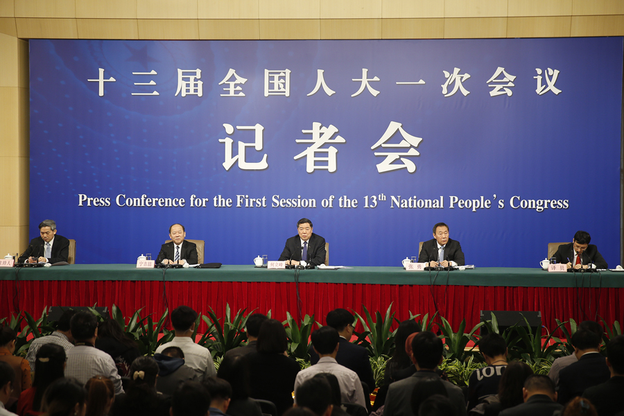 十三屆全國人大一次會議新聞中心3月6日上午10時在梅地亞中心多功能廳舉行記者會,邀請國家發(fā)展和改革委員會主任何立峰、副主任張勇、副主任寧吉喆就“創(chuàng)新和完善宏觀調(diào)控,推動高質(zhì)量發(fā)展”相關(guān)問題回答中外記者提問。圖為記者會現(xiàn)場。 新華網(wǎng)/中國政府網(wǎng) 陳杰 攝