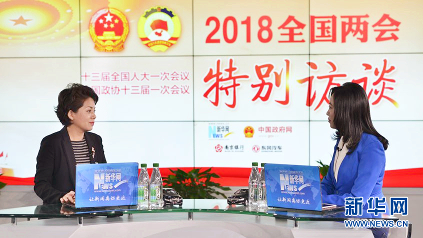 3月7日,全國(guó)政協(xié)委員、民盟中央常委、民盟吉林省委主委、吉林省旅游發(fā)展委員會(huì)主任楊安娣(左)做客新華網(wǎng)2018全國(guó)兩會(huì)特別訪談。新華網(wǎng) 李相博攝
