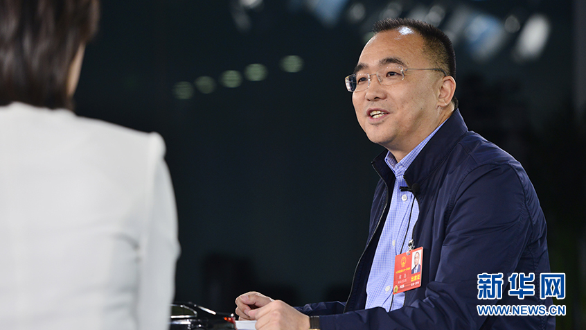 第十三屆全國人大代表、卓爾控股有限公司董事長(zhǎng)閻志做客新華網(wǎng)2018全國兩會(huì)特別訪談。新華網(wǎng) 李相博攝
