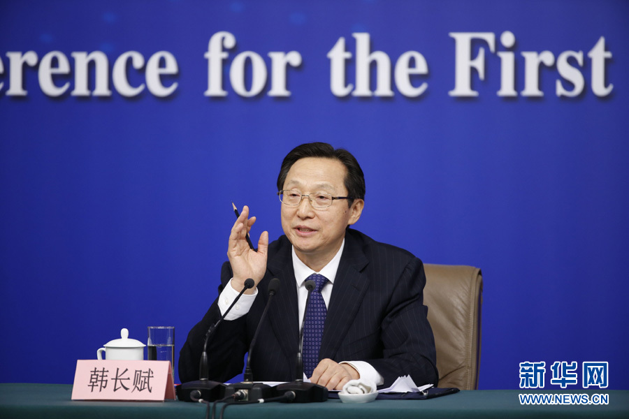 十三屆全國(guó)人大一次會(huì)議新聞中心于3月7日在梅地亞中心多功能廳舉行記者會(huì),邀請(qǐng)農(nóng)業(yè)部部長(zhǎng)韓長(zhǎng)賦,農(nóng)業(yè)部新聞發(fā)言人、辦公廳主任潘顯政就“實(shí)施鄉(xiāng)村振興戰(zhàn)略 推動(dòng)農(nóng)業(yè)轉(zhuǎn)型升級(jí)”的相關(guān)問題回答中外記者的提問。圖為韓長(zhǎng)賦回答記者提問。新華網(wǎng)/中國(guó)政府網(wǎng)翟子赫