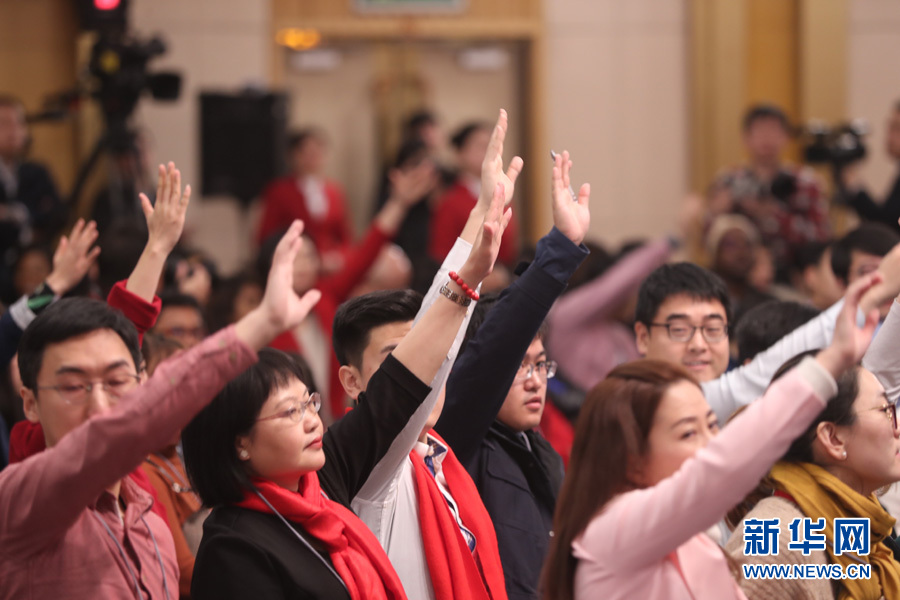 十三屆全國(guó)人大一次會(huì)議新聞中心于3月7日在梅地亞中心多功能廳舉行記者會(huì),邀請(qǐng)農(nóng)業(yè)部部長(zhǎng)韓長(zhǎng)賦,農(nóng)業(yè)部新聞發(fā)言人、辦公廳主任潘顯政就“實(shí)施鄉(xiāng)村振興戰(zhàn)略 推動(dòng)農(nóng)業(yè)轉(zhuǎn)型升級(jí)”的相關(guān)問(wèn)題回答中外記者的提問(wèn)。圖為現(xiàn)場(chǎng)記者舉手提問(wèn)。新華網(wǎng)/中國(guó)政府網(wǎng) 陳杰 攝